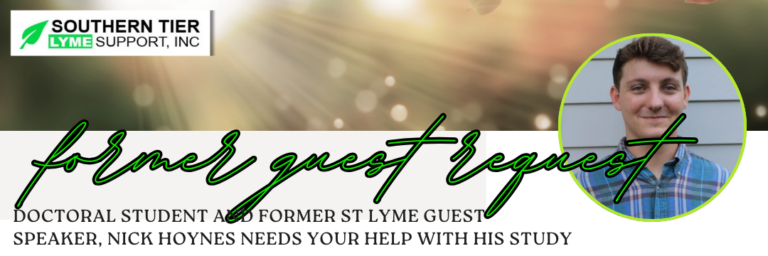 Nick Hoynes is a graduate student in sociology at New York University, working on a project about the experience of living with Lyme disease. He is seeking participants (18 years or older) to take part in interviews. Participation will be kept strictly confidential.