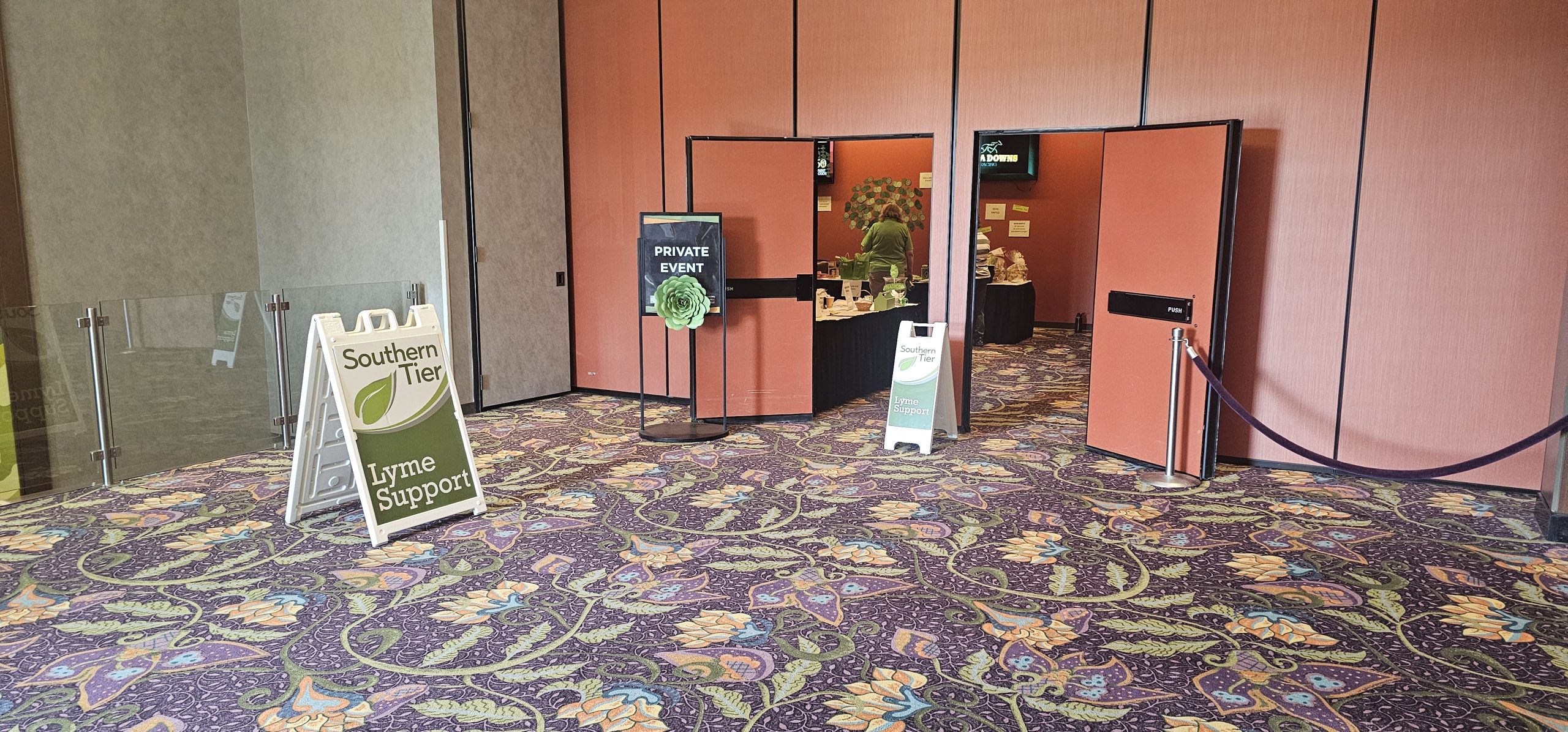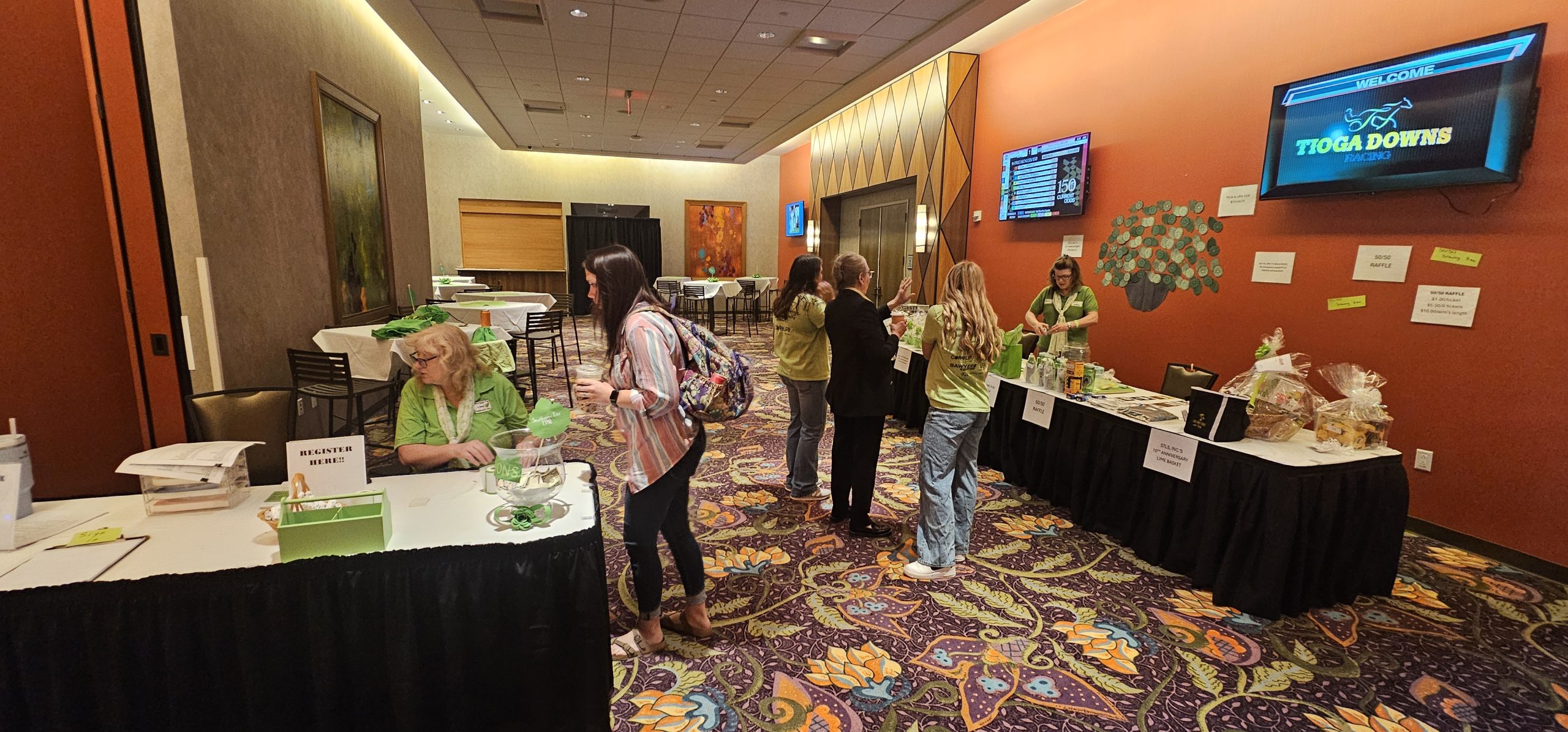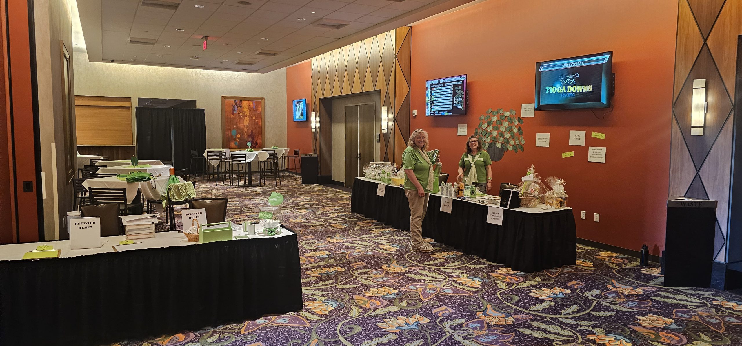 buffet dinner with gluten free options; cash bar with wine, beer, soda, coffee, tea, and a lime mocktail; Vendors and raffles including 50-50 raffle; and live music with
